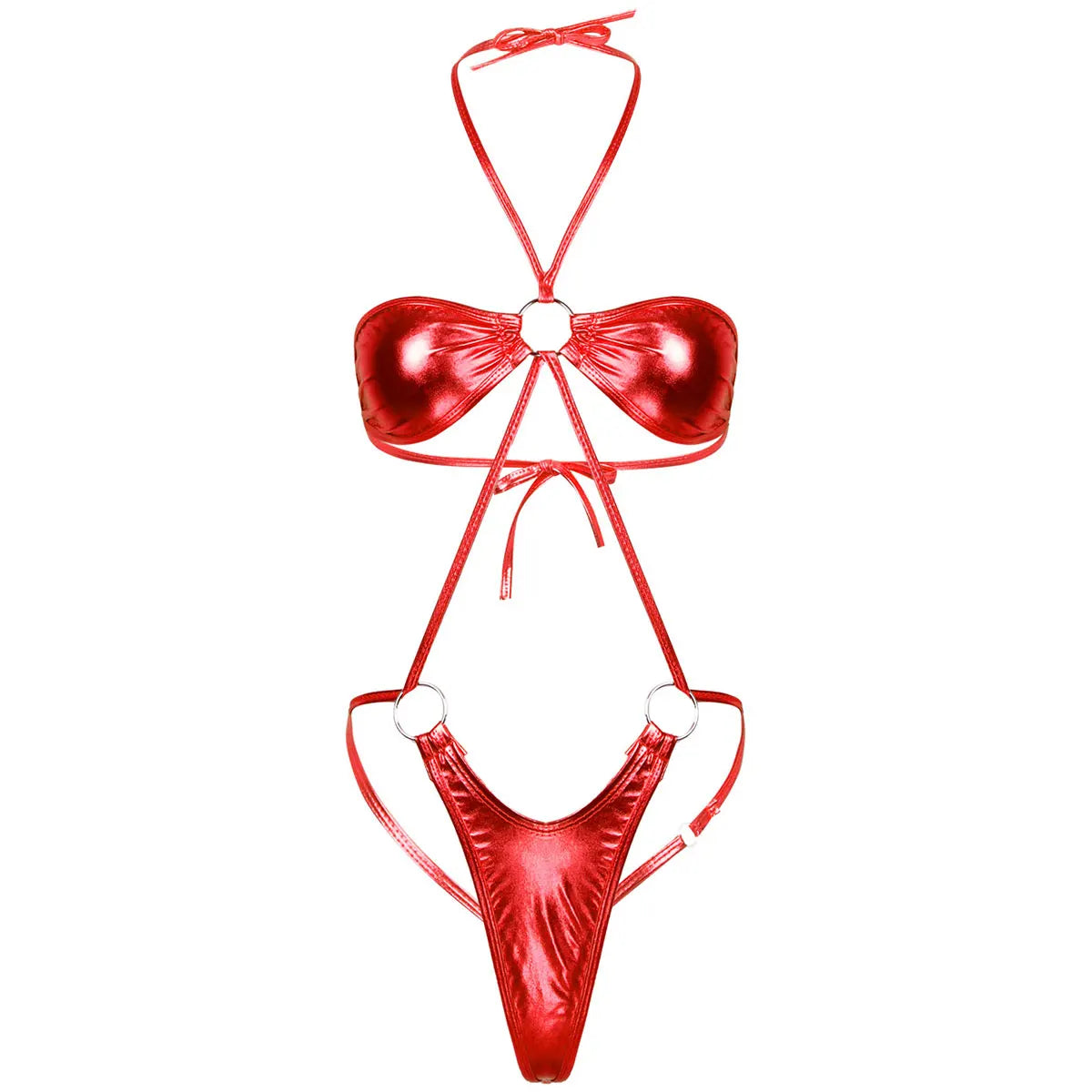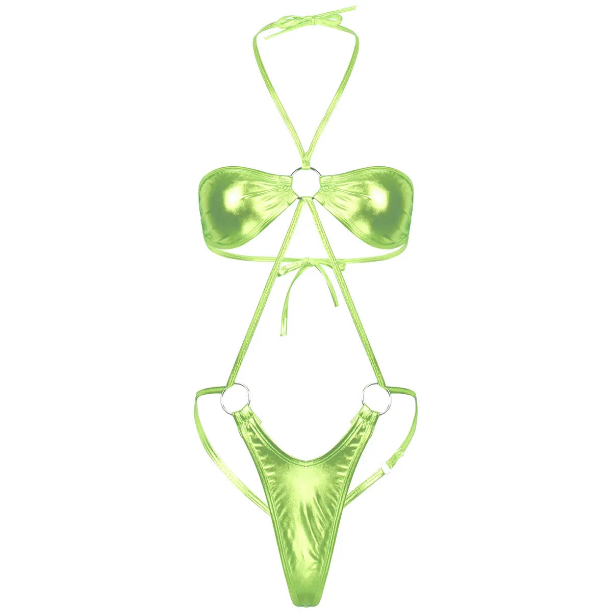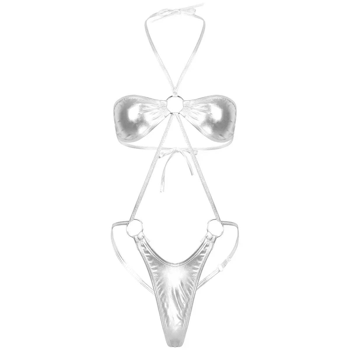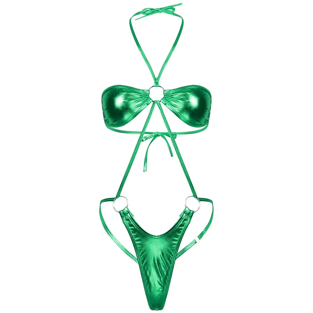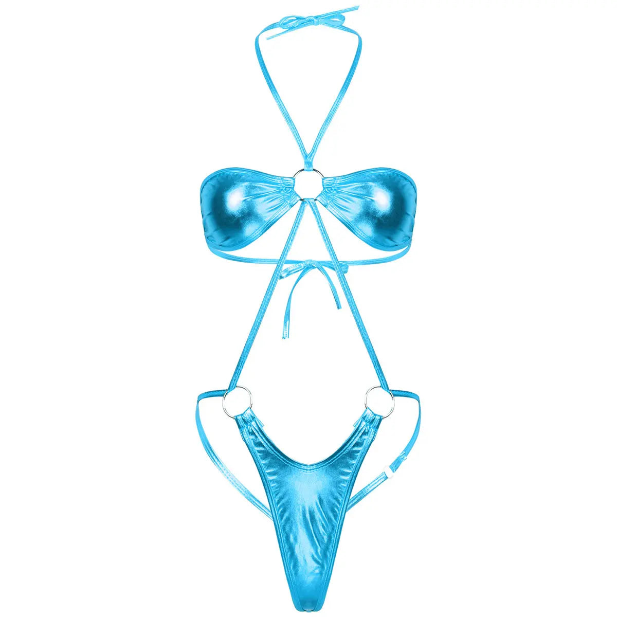 Make a bold statement with this stunning 1 piece Metallic Trikini. Crafted with eye-catching metallic fabric, this daring design combines coverage with contemporary flair. The sleek silhouette flatters your figure while the shimmering finish ensures you'll turn heads poolside or at the beach. Perfect for those who want to stand out with confidence and style. Embrace your inner glamour and own every moment in this show-stopping swimwear essential.
